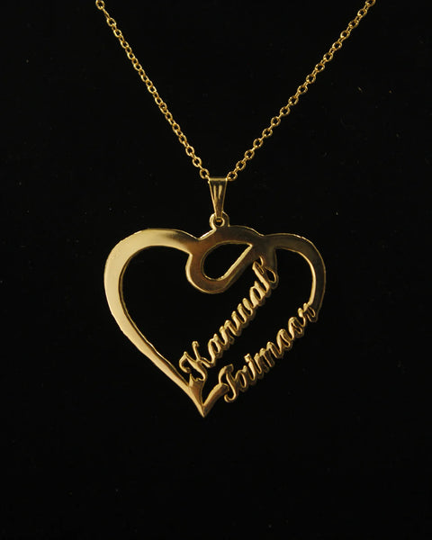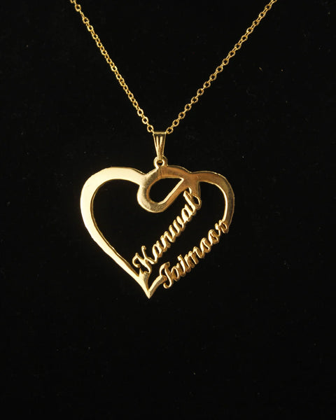 Crafted with a refined dual-name design, this necklace features an elegant heart motif that symbolizes connection and shared meaning. Built with premium materials, it offers a polished finish, lasting durability, and comfortable everyday wear. A timeless personalized piece designed to celebrate your bond with modern elegance.
